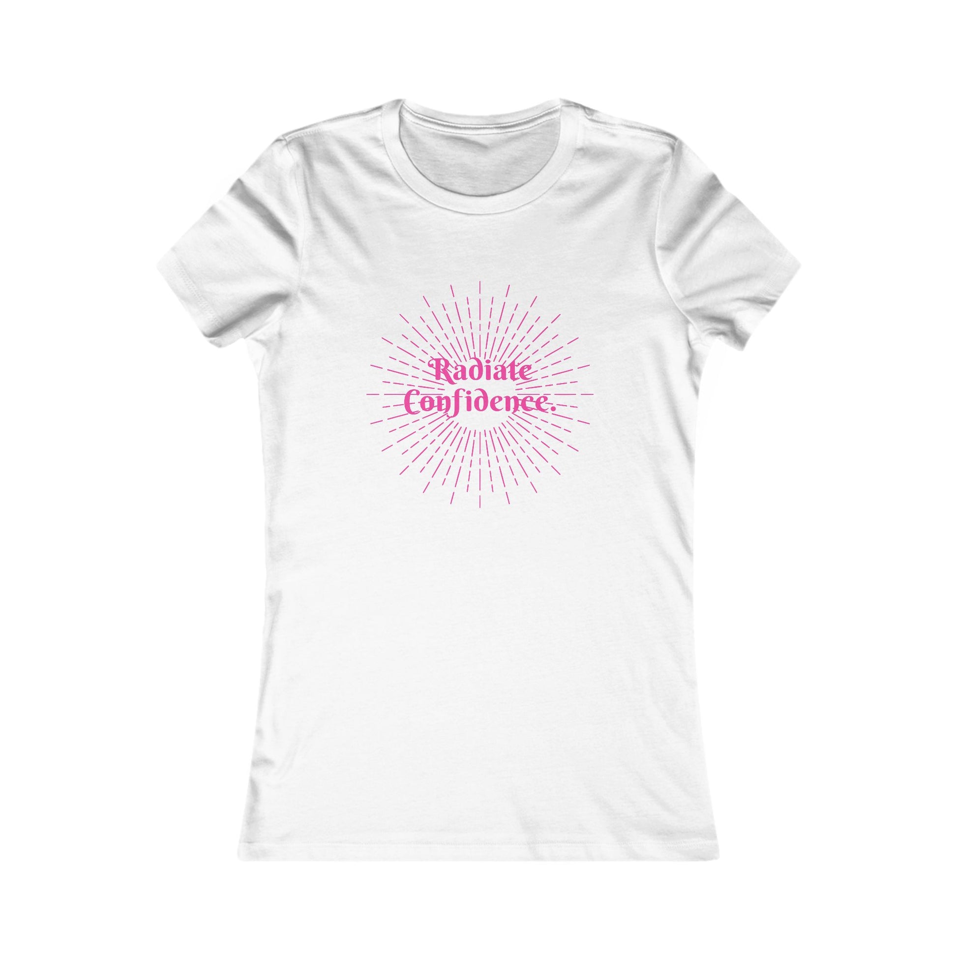 Radiate Confidence Women's Tee — Empowering Pink Burst Graphic