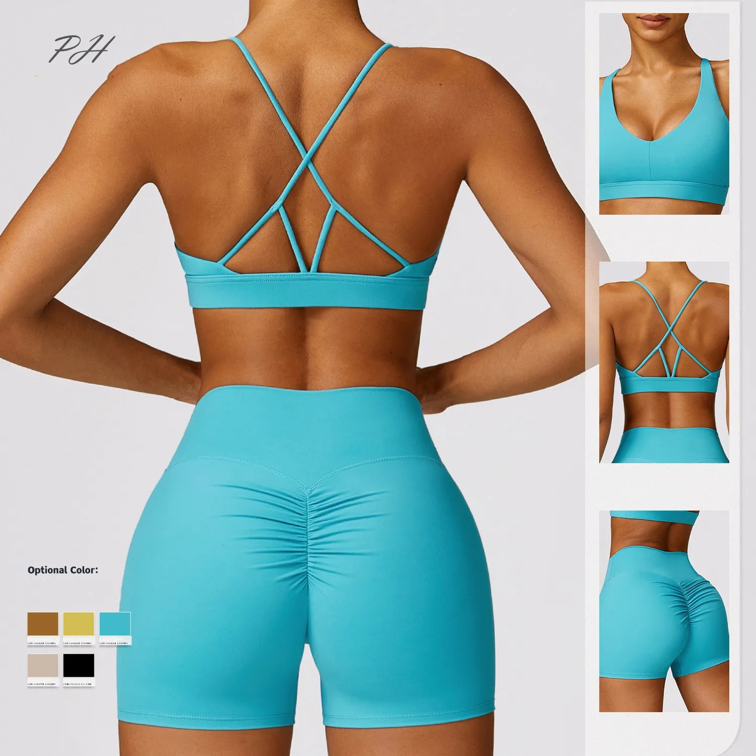 Women Athletic Bra and Shorts Sets - Cross Sports Bra Fitness Workout Outfits